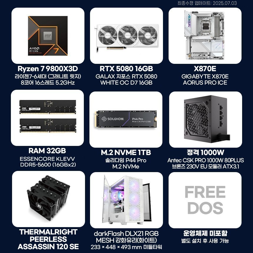 | CPU | AMD 라이젠7 9800X3D (8코어 16스레드) | |